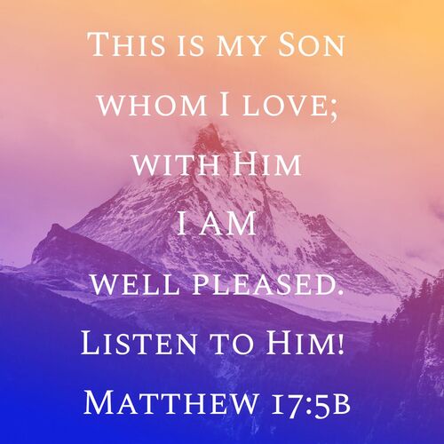 He was still speaking when, behold, a bright cloud overshadowed them, and a voice from the cloud said, “This is my beloved Son, with whom I am well pleased; listen to him.”