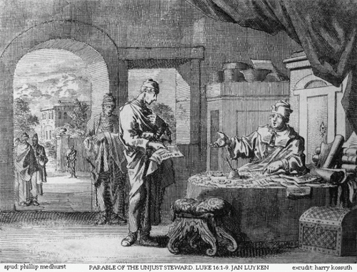 Parable of the Unjust Steward, by Jan Luyken, from the Bowyer Bible [Copyleft Free Art License]